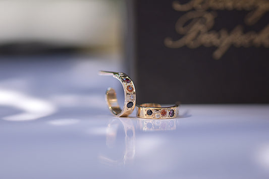 9ct Gold Matching Unisex Inlay Wedding Bands