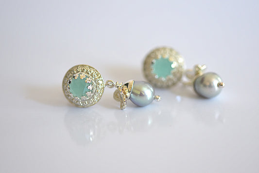 Aqua Chalcedony & Pearl Butterfly Earrings