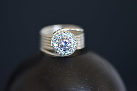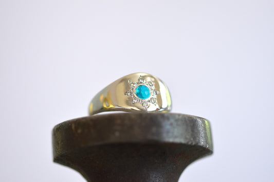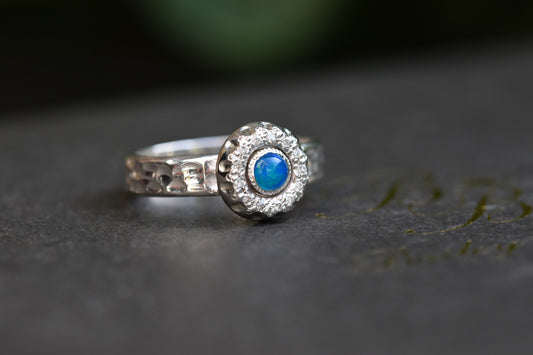 Paraiba Opal & Moissanite Diamond Halo Ring